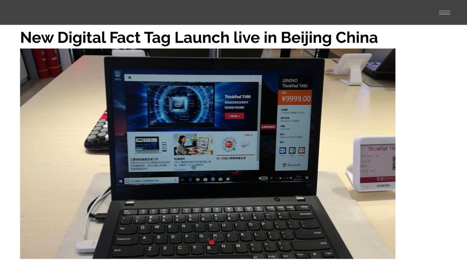 The Digital Fact Tag shows off the make, model, price, specs and other information about the machine using a CMS system for instant updates and advertising campaigns directly from the cloud. Launched world-wide starting in Beijing China for Lenovo with rollouts in US, CAN, LATAM, EMEA, and APAC regions world-wide.