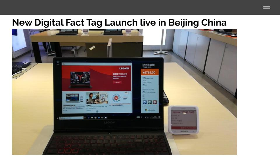 The Digital Fact Tag shows off the make, model, price, specs and other information about the machine using a CMS system for instant updates and advertising campaigns directly from the cloud. Launched world-wide starting in Beijing China for Lenovo with rollouts in US, CAN, LATAM, EMEA, and APAC regions world-wide.